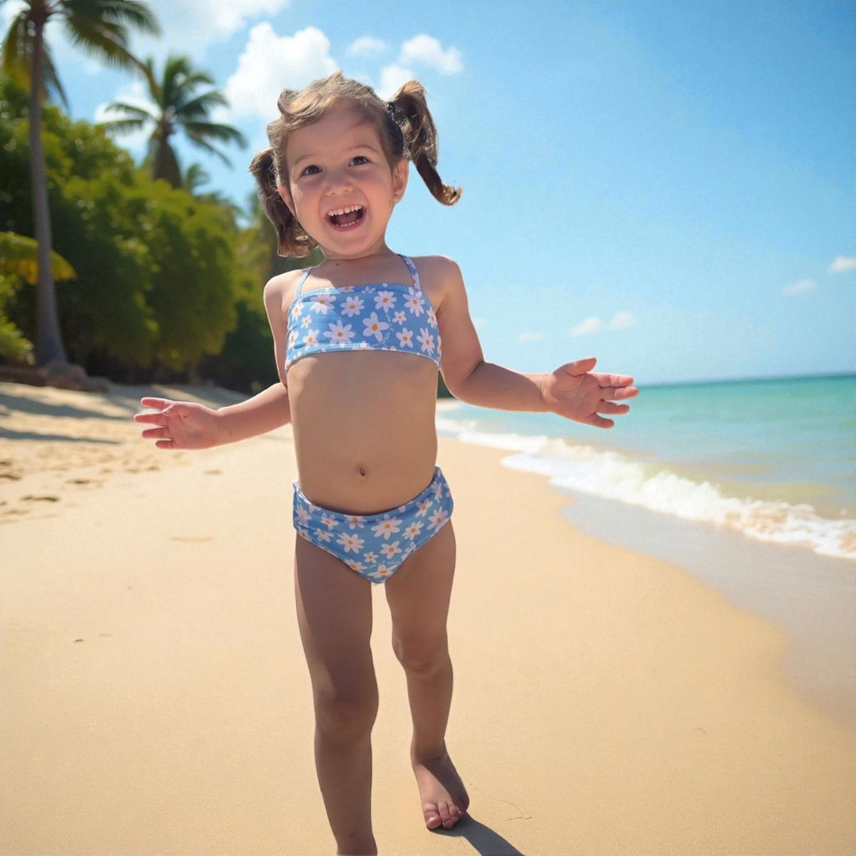 El top tiene forro en la parte delantera y 4 tiras (dos delanteras y dos traseras) para ajustar el mismo al cuerpo de la niña sin complicaciones. Puede optar por cruzar las tiras traseras, por atarla al cuello, por atarla en hombros.... según preferencia y comodidad.