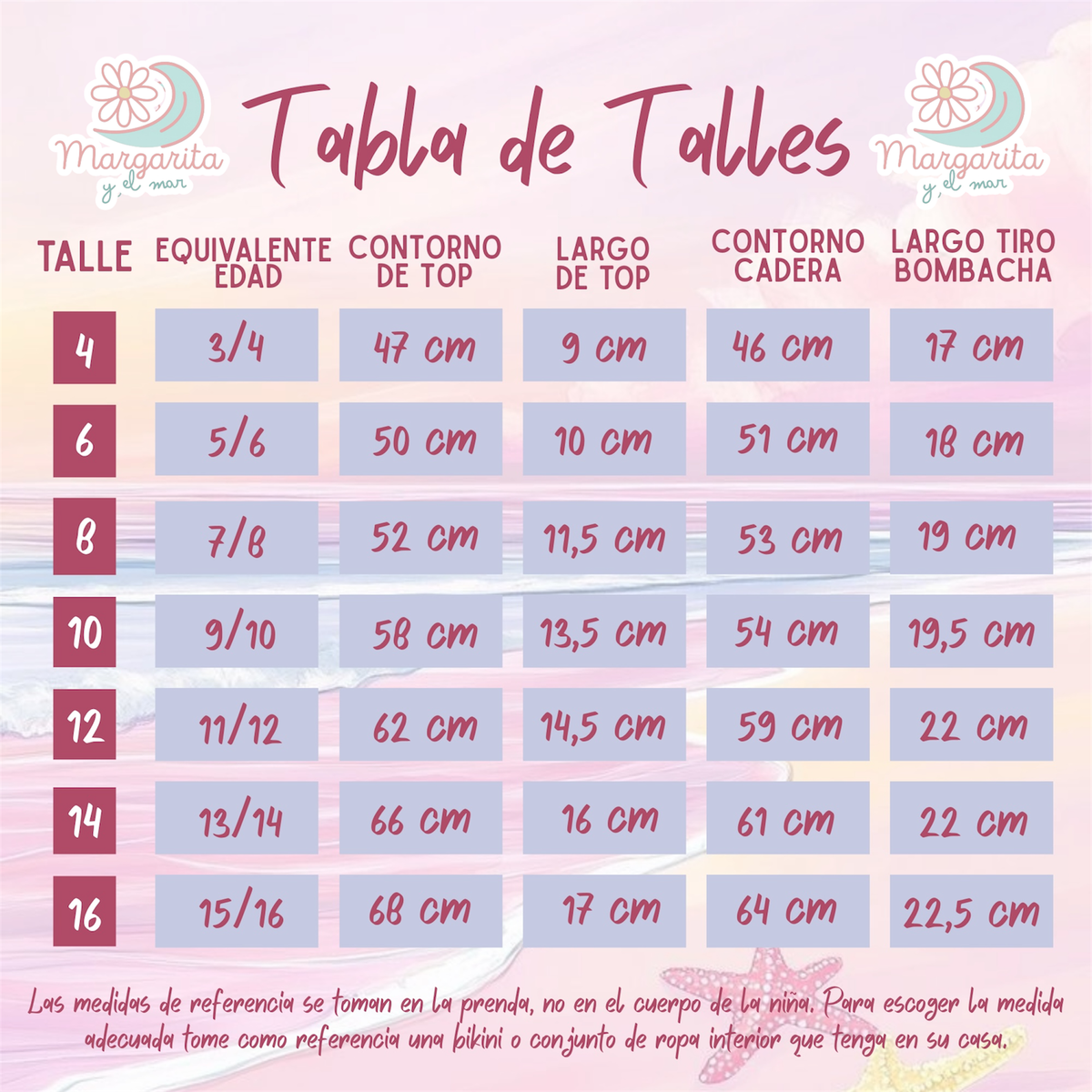 A modo de referencia...en las fotos Marti usa talle 4 y Fran talle 16 .
